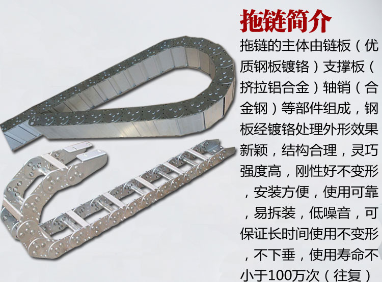 本公司產品,支持3-80米長行程高性能,請放心選購,品質承諾,三年內非人為損壞,拖鏈斷裂,脫節,壞一賠十 ,鋼制拖鏈屬于定做,切記確定好尺寸,非質量問題,買家自己承擔。