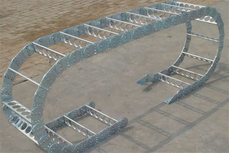 TL系列鋼鋁拖鏈主要由鏈板(鍍鉻的優質不銹鋼),支撐板(擠壓鋁合金)和銷軸(合金)等組成。