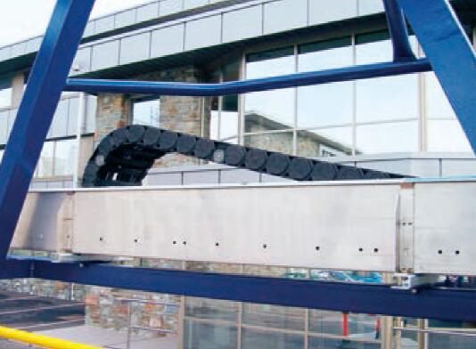 拖鏈配合超級(jí)鋁制導(dǎo)向槽,用于大型起重機(jī)。
