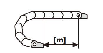 根據內部電纜來決定拖鏈的彎曲半徑R [mm]